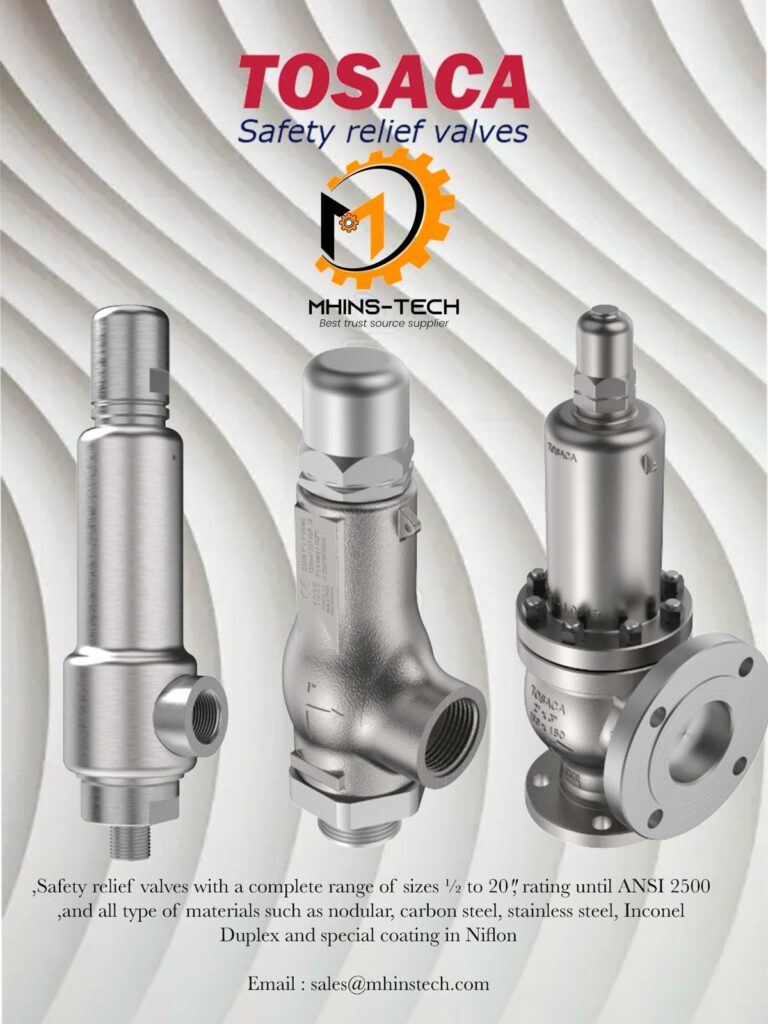 Safety relief valves with a complete range of sizes ½ to 20″, rating until ANSI 2500, and all type of materials such as nodular, carbon steel, stainless steel, Inconel, Duplex and special coating in Niflon.